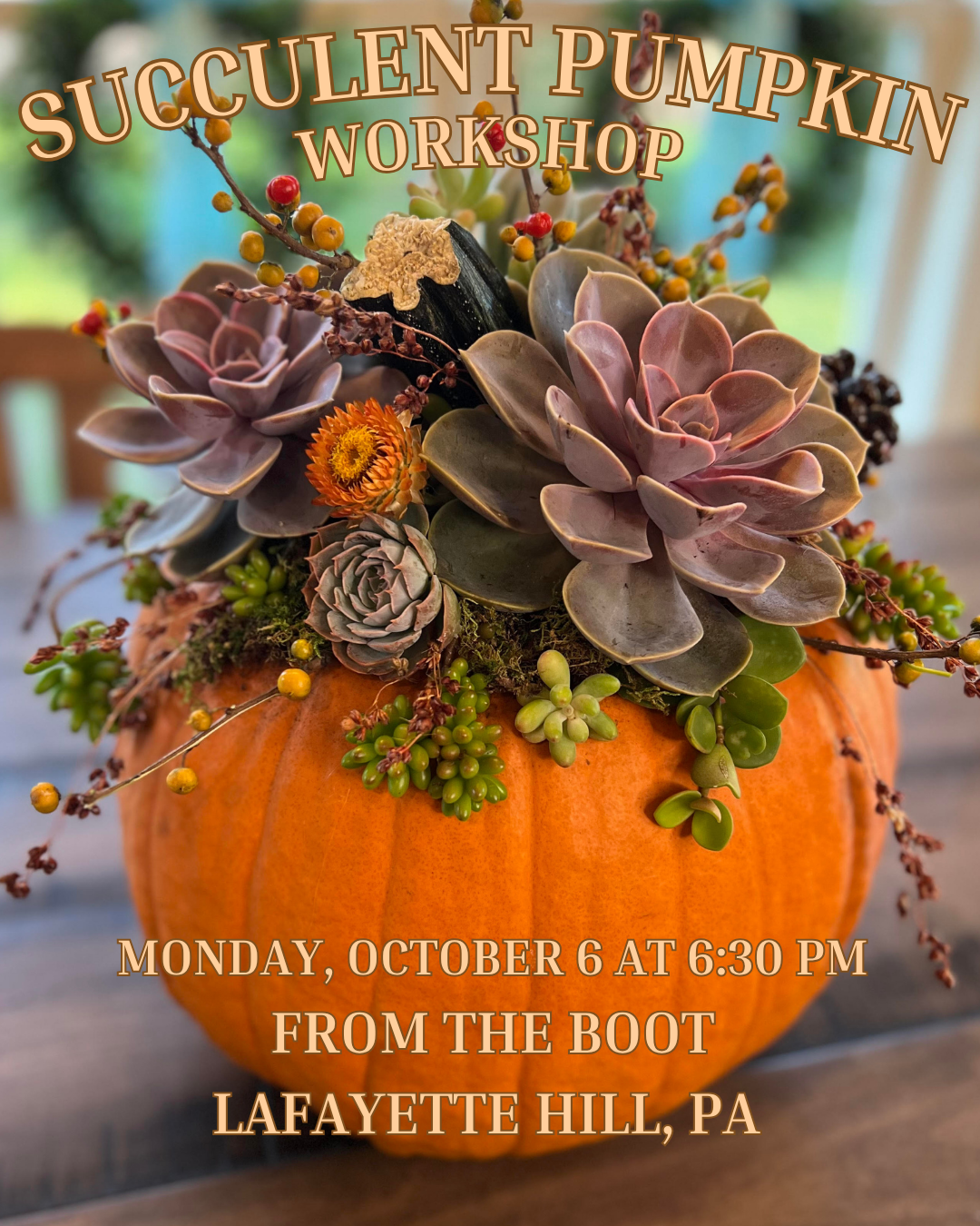 10/6 Succulent Pumpkin Workshop at From the Boot Lafayette Hill at 6:30 pm - BYOB (Dinner included)